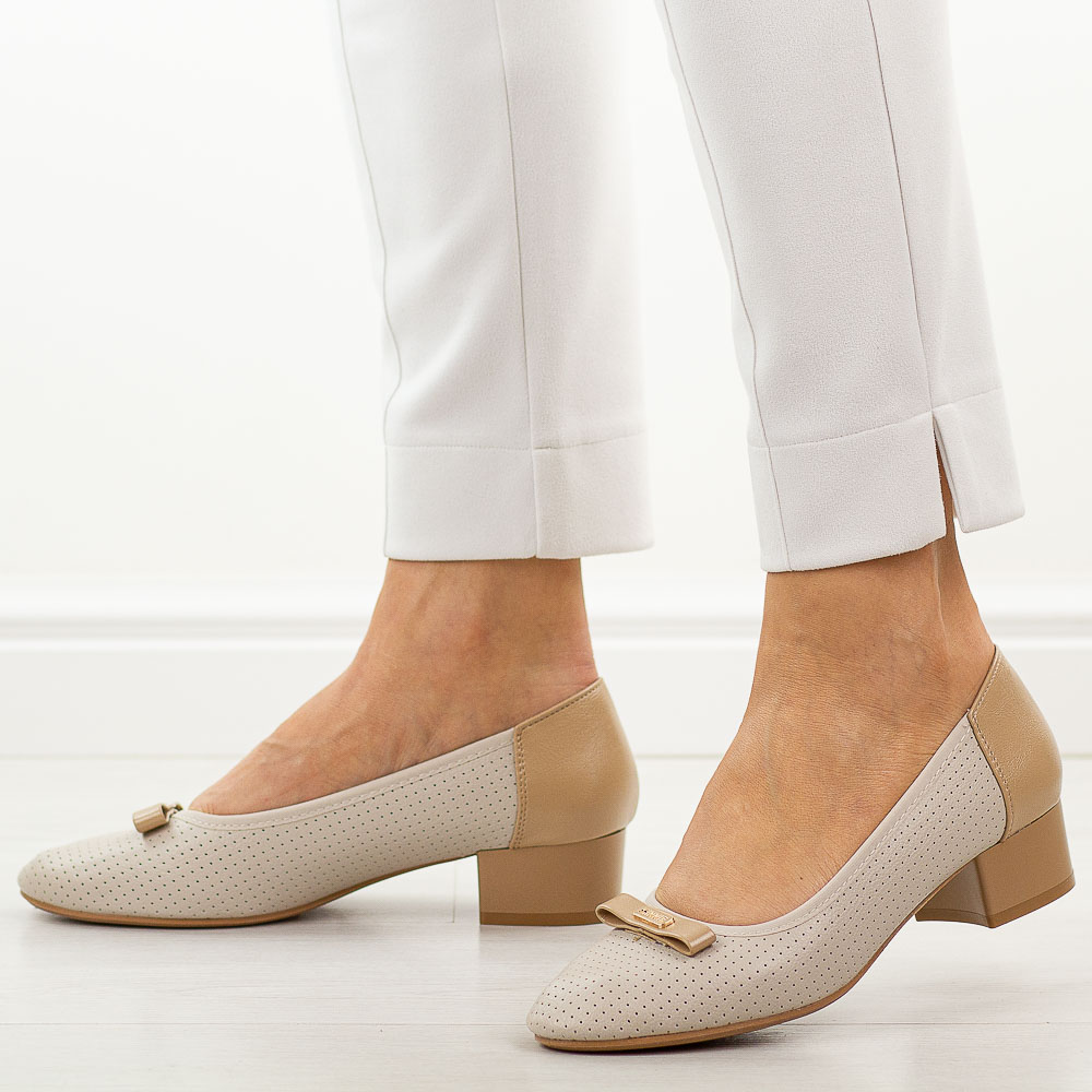 Beżowe ażurowe czółenka damskie na obcasie M.Daszyński Sa200-17 – Beżowy 33325