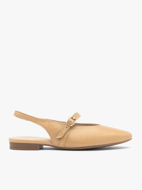 Beżowe czółenka bez pięty ze skóry licowej – Beżowy 100203493