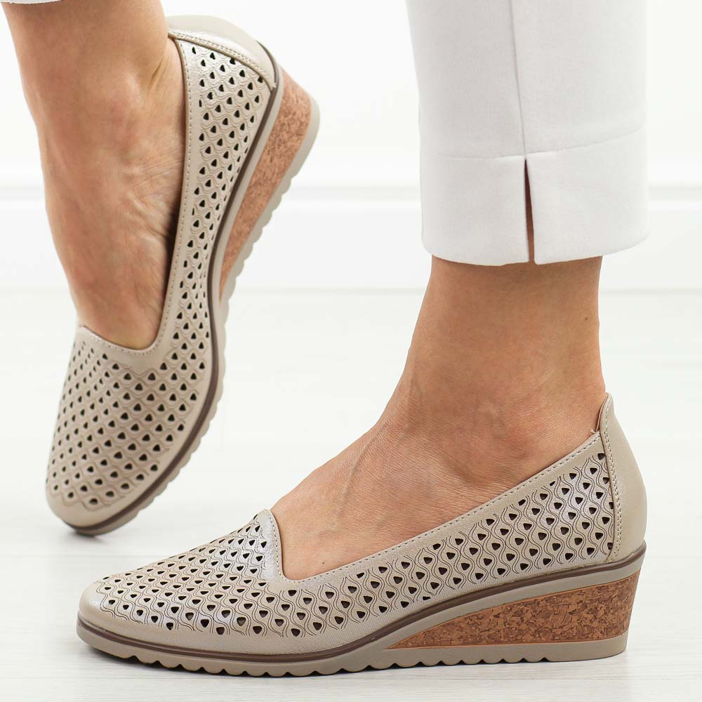 Beżowe czółenka damskie na koturnie Potocki 12018 – Beżowy 22709