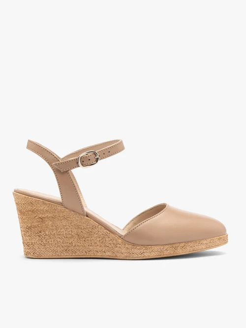 • Beżowe czółenka z otwartą pietą z linii RYŁKO RELAX.Model wykonany ze skóry licowej.Podszewka i wyściółka skórzana.Platforma o wysokości 7 cm.Nosek okrągły.Dystrybutor: Brawo Sp. z o.o. ul. Dworcowa 19, 34