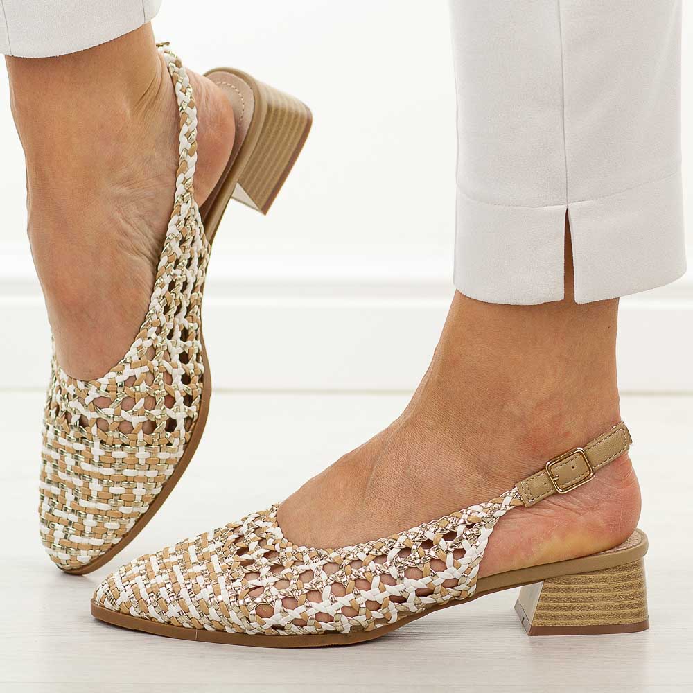 • Beżowe czółenka damskie marki T.Sokolskito elegancka i lekka propozycja dla kobiet, które cenią wygodę oraz nowoczesny styl. Te czółenka damskie eleganckie zostały wykonane z przewiewnej siatki, co zapewnia odpowiednią cyrkulację powietrza i komfort podczas cieplejszych dni. Migdałowy nosek nadaje obuwiu subtelnego charakteru, a odkryta pięta dodaje lekkości i sprawia, że model idealnie sprawdzi się w sezonie wiosenno
