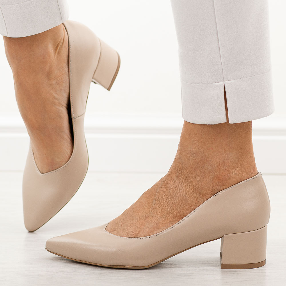 Beżowe s128 skórzane Polskie czółenka damskie na obcasie Prestige 2235/obl – Beżowy 33405