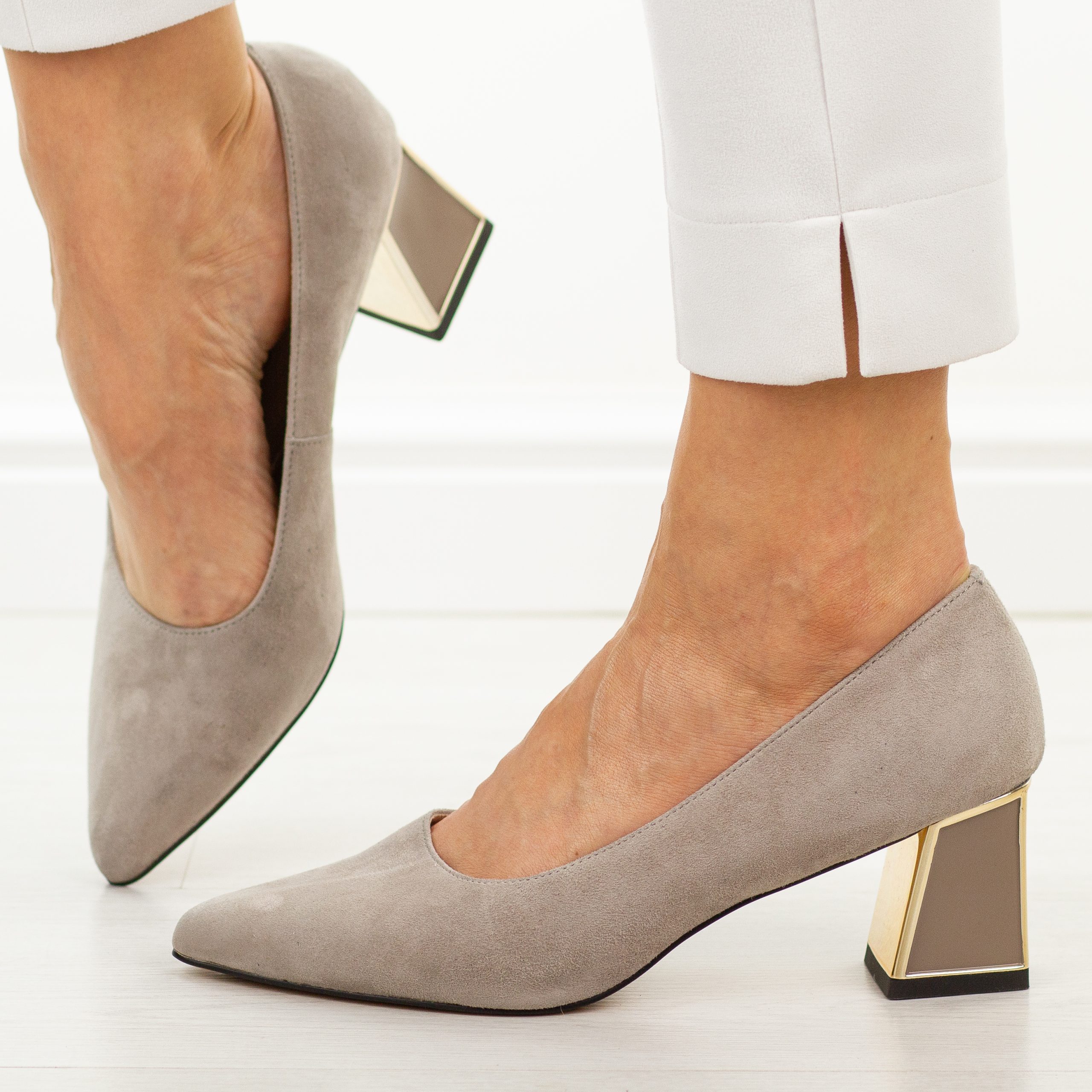 • Beżowe czółenka damskie marki Vincezato elegancka propozycja dla kobiet, które cenią styl, jakość i wygodę. Te czółenka damskie skórzane zostały wykonane z wysokiej jakości zamszowej skóry naturalnej, co nadaje im luksusowego wyglądu oraz zapewnia trwałość. Smukły nosek w szpic podkreśla kobiecy charakter i optycznie wysmukla sylwetkę, dzięki czemu są to wyjątkowe buty damskie eleganckie idealne na różne okazje. Model wyposażony jest w miękką skórzaną wkładkę, która zwiększa komfort nawet podczas wielogodzinnego noszenia. Stabilny, ozdobny słupek zapewnia wygodę oraz odpowiednie podparcie, dlatego są to wygodne czółenka damskie na słupku doskonałe zarówno do pracy, jak i na uroczystości. Staranność wykonania sprawia, że są to trwałe czółenka damskie, odporne na codzienne użytkowanie i zachowujące estetyczny wygląd przez długi czas. Te czółenka damskie na wiosnę lato jesień świetnie komponują się z eleganckimi sukienkami, spódnicami, garniturami, a także z klasycznymi spodniami. Jeśli szukasz modnych czółenek damskich, które łączą elegancję z wygodą, ten model będzie doskonałym wyborem. słupek: 6.5 cm GWARANCJA na 12 miesięcy