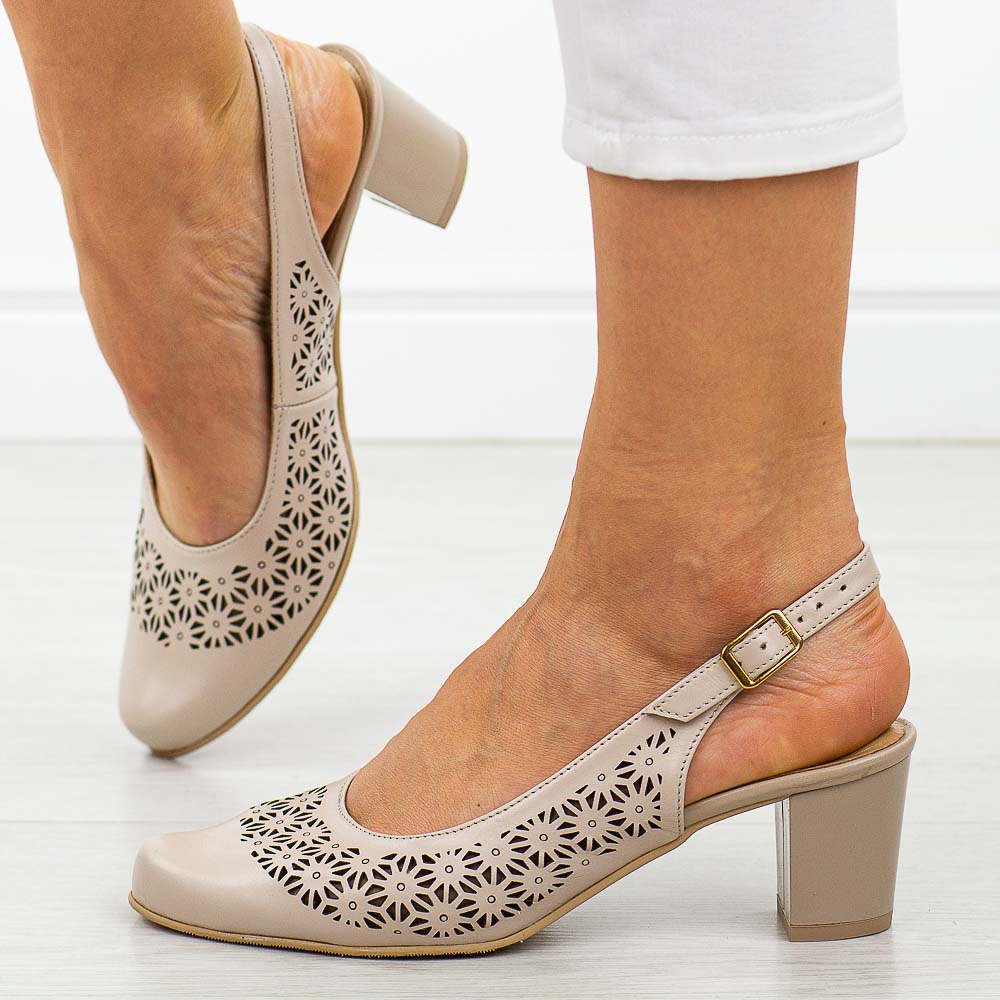 Beżowe skórzane Polskie czółenka damskie z odkryta piętą Deoni L85 – Beżowy 23784