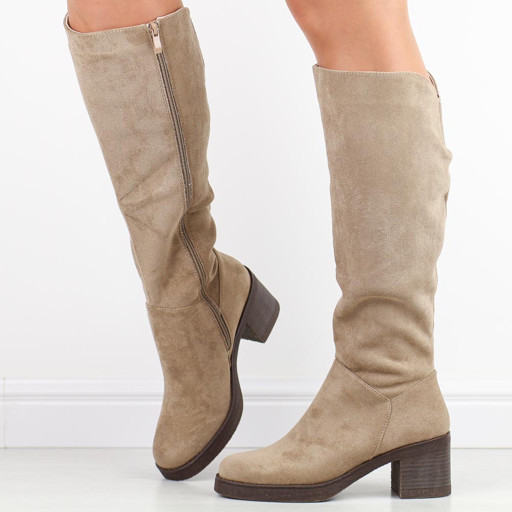 Beżowe zamszowe kozaki damskie M.Daszyński 2426-24 – Beżowy 30018