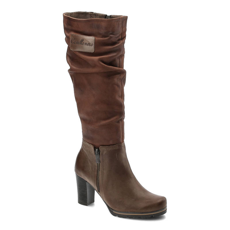 Brązowe Kozaki Karino Damskie Buty Na Obcasie – brązowy 4574-21