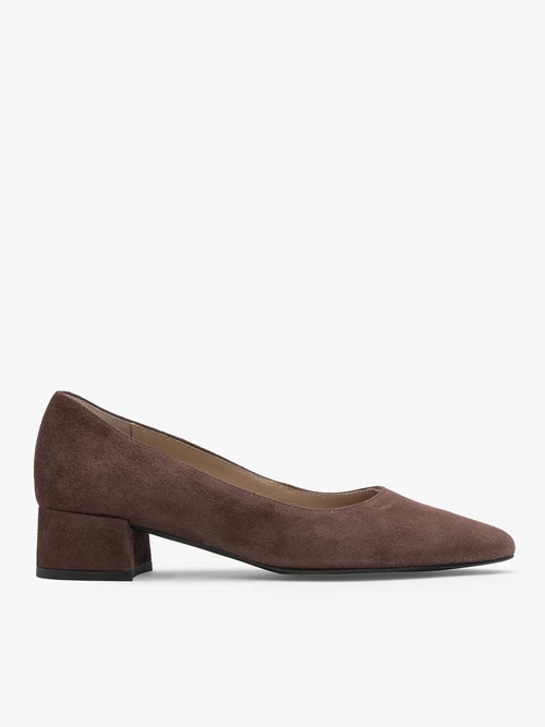 Brązowe welurowe czółenka na niskim obcasie – Brązowy 327812