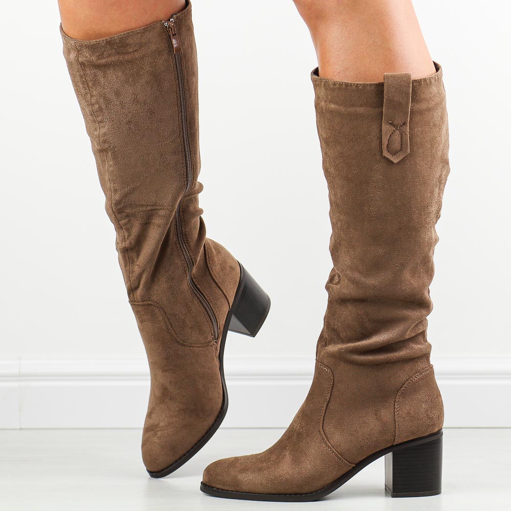 Brązowe zamszowe kozaki damskie na obcasie M.Daszyński 2337-1 – Brązowy 29097