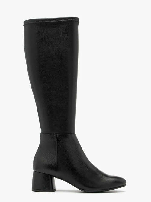 Czarne kozaki z elastyczną szeroką cholewką na niskim obcasie – Czarny 327413