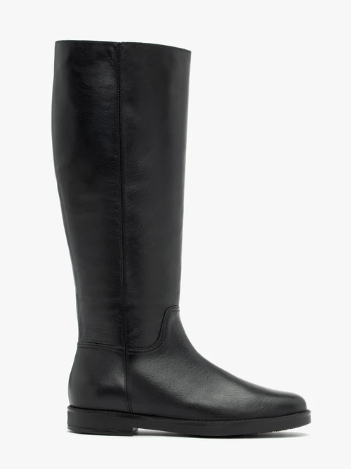 Czarne płaskie kozaki ze skóry licowej – Czarny 100201417
