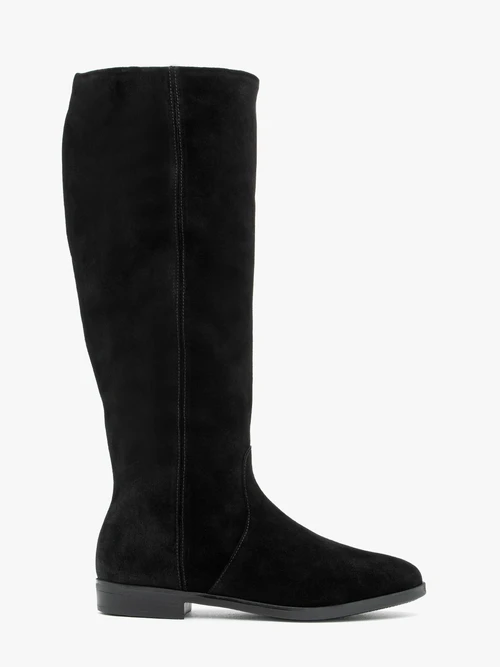 Czarne płaskie kozaki ze skóry welurowej – Czarny 100201711