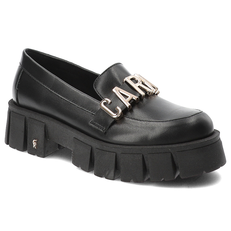 Czarne Półbuty Carinii Stylowe Mokasyny Damskie – czarny 16336-B