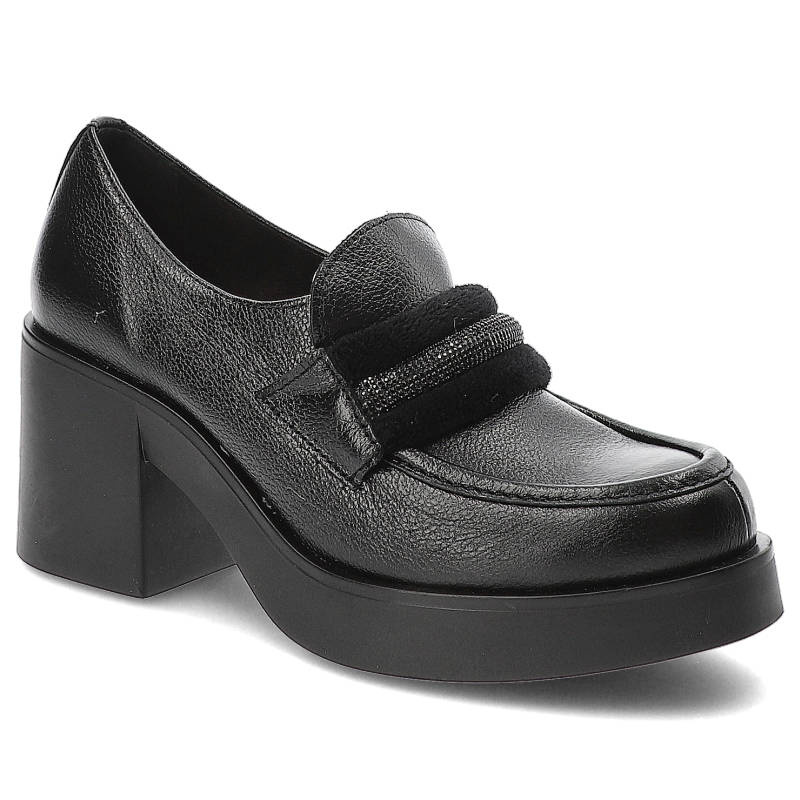 Czarne Półbuty Lemar Wygodne Skórzane Buty – idealne półbuty damskie do pracy, na spacer i na co dzień.