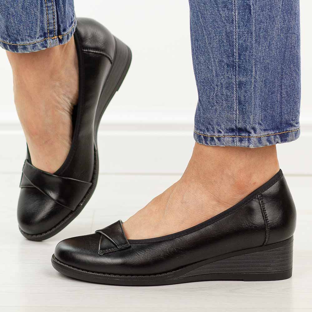 Czarne skórzane czółenka damskie na koturnie Vinceza 18136 – Czarny 34312