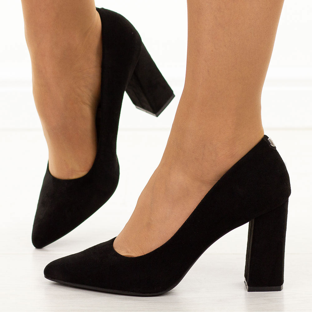 Czarne zamszowe czółenka damskie na słupku Sergio Leone Pb216 – Czarny 18201