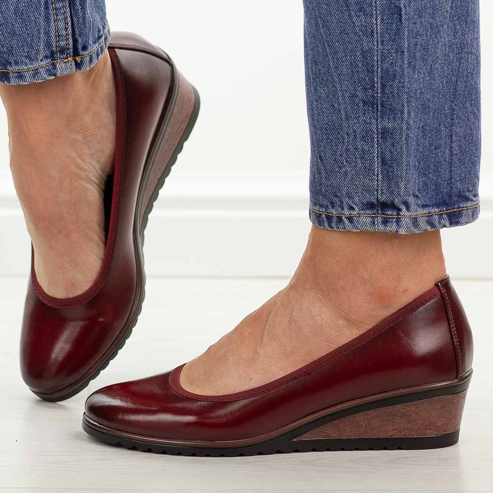 Czerwone czółenka damskie na koturnie Vinceza 58628 – Bordowy 34309