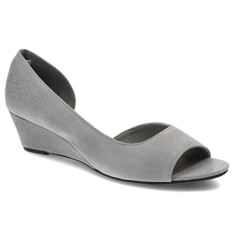Czółenka damskie Maciejka, skóra zamszowa z otwartymi palcamii profilowanym koturnem, popielate, 01304-03-00-1 – szary 5385-H