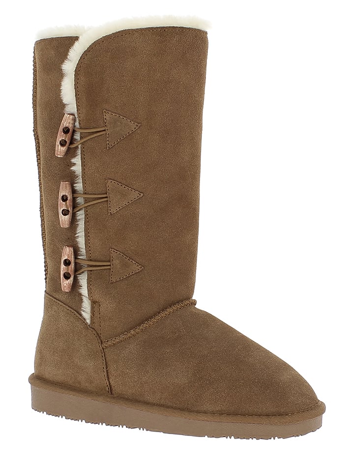 • – ze skóry welurowej- zapięcie: bez- noski: zaokrąglone- detale: guziki-kołeczki- wyściółka: ogrzewająca wełna- dookoła gumowanie- podeszwa: antypoślizgowa