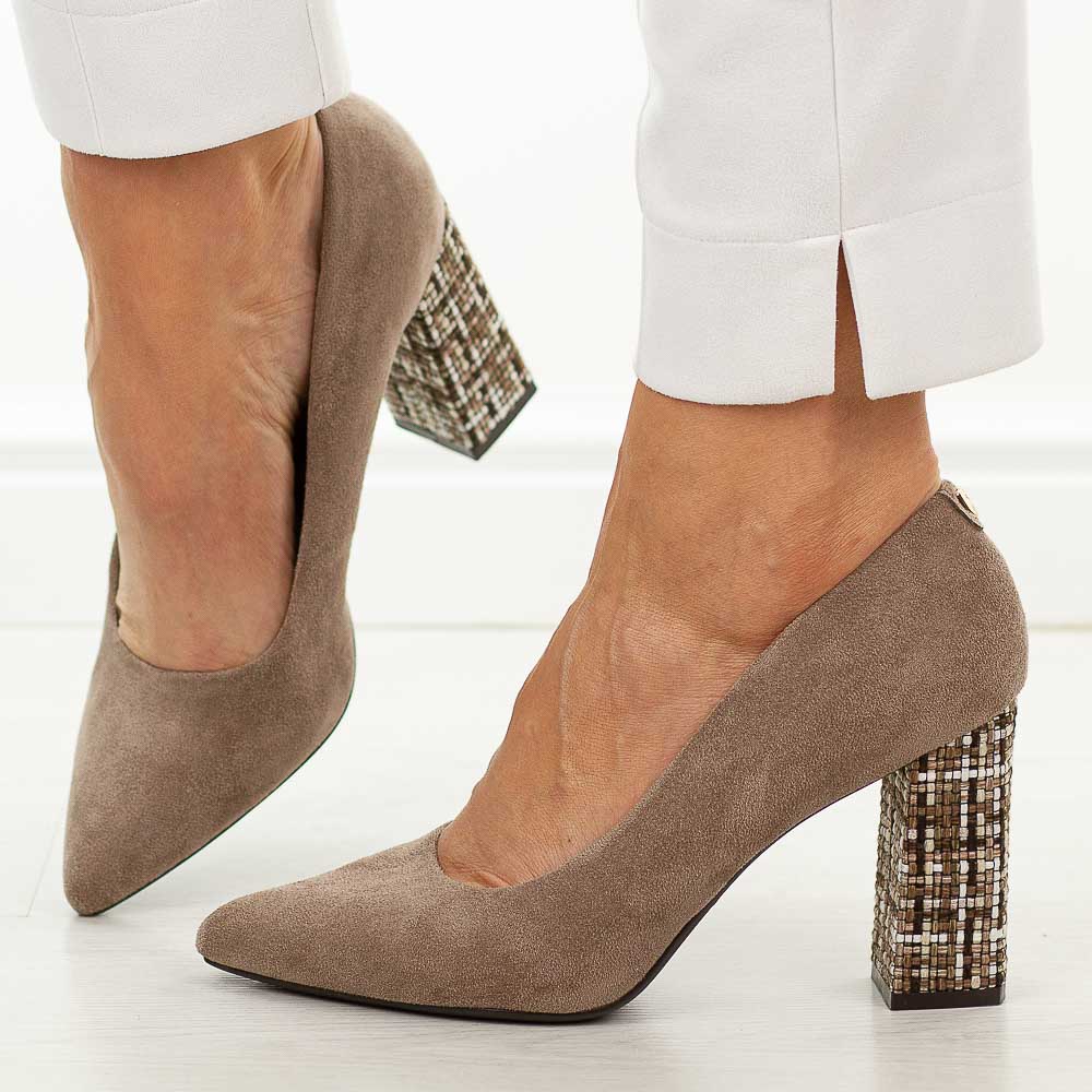 • Te brązowe czółenka damskie na słupkuto idealny wybór na wiosnę, jesień oraz różnego rodzaju okazje, od formalnych spotkań po uroczyste wesela. Ich elegancki design w połączeniu z wygodą noszenia sprawia, że są niezastąpione w damskiej garderobie. Cholewka wykonana z wysokiej jakości materiału zamszopodobnego gwarantuje trwałość i estetyczny wygląd, podczas gdy miękka wkładka ze skóry naturalnej zapewnia komfort nawet podczas długiego noszenia. Elastyczny spód na słupku gwarantuje stabilność i pewność kroków, co sprawia, że te buty są odpowiednie zarówno do noszenia przez cały dzień w biurze, jak i na wieczorne wyjścia. Pasują zarówno do eleganckich spodni, jak i stylowych sukienek, doskonale uzupełniając różnorodne stylizacje. Dopasowane do standardowej tęgości stóp kobiet, są gwarancją udanego i modnego wyglądu w każdej sytuacji. słupek: 9 cm, wysokość buta: 15.5 cm GWARANCJA na 12 miesięcy