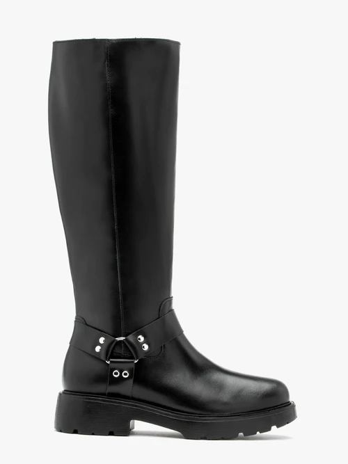 • Czarne kozaki damskie typu biker z linii RKO.Model wykonany ze skóry licowej.Podszewka wykonana z włókniny i tkaniny, a wyściółka z włókniny.Buty ocieplane.Zamek na całej długości cholewki.Lekka podeszwa o grubości 4 cm.Nosek okrągły.R.FLY – Niezwykle lekka i sprężysta podeszwa wykonana z materiału EVA