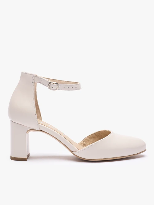 Kremowe ślubne czółenka ze skóry licowej – Beżowy 100206761