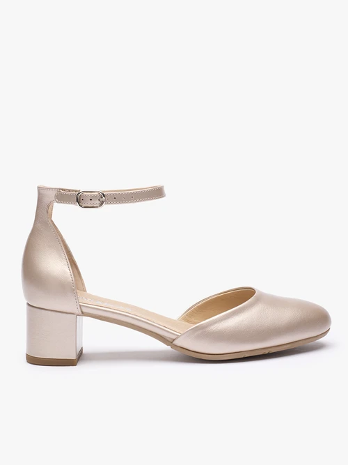 Platynowe ślubne czółenka ze skóry licowej – Beżowy 100204708