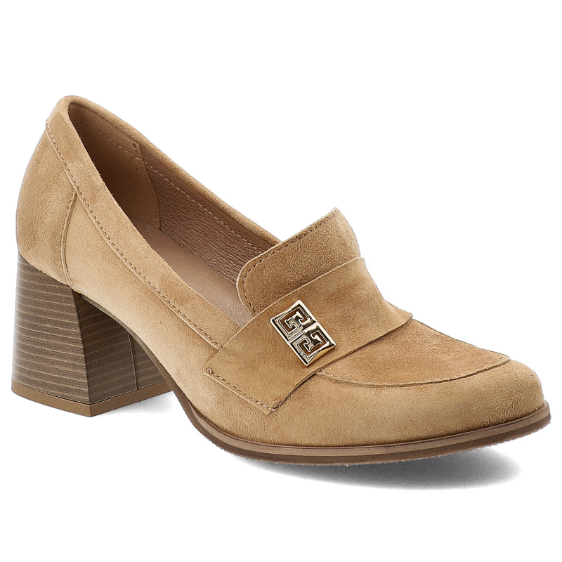 Szukasz idealnych półbutów damskich na co dzień? Model Półbuty damskie Armodo, cholewka ze skóry naturalnej zamszowej wsuwany fason z ozdobnym paskiem i metalowym elementem, brązowe, 20207 to połączenie stylu, wygody i ponadczasowego designu.