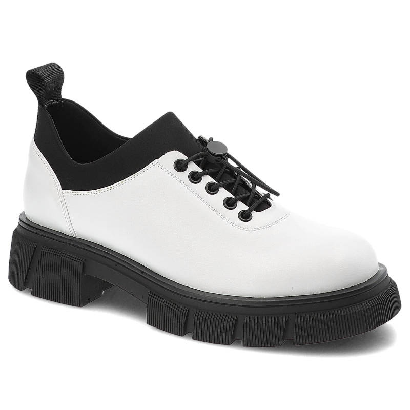 Półbuty damskie Artiker, cholewka z gładkiej skóry naturalnej z kontrastowym kołnierzem i klasycznym sznurowaniem masywna podeszwa o wyraźnym ryflowa – biały 10771-D