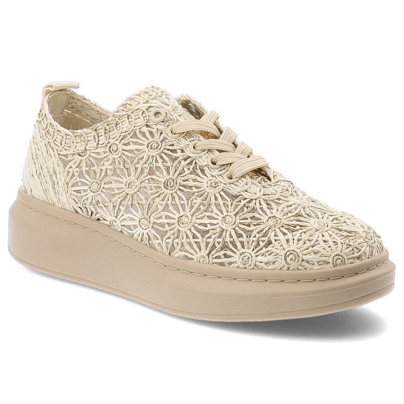 Półbuty damskie Artiker, cholewka ze skóry naturalnej ażurowa struktura kwiatowy wzór sznurowany fason, beżowe, 58C0529 – beżowy 20608-F