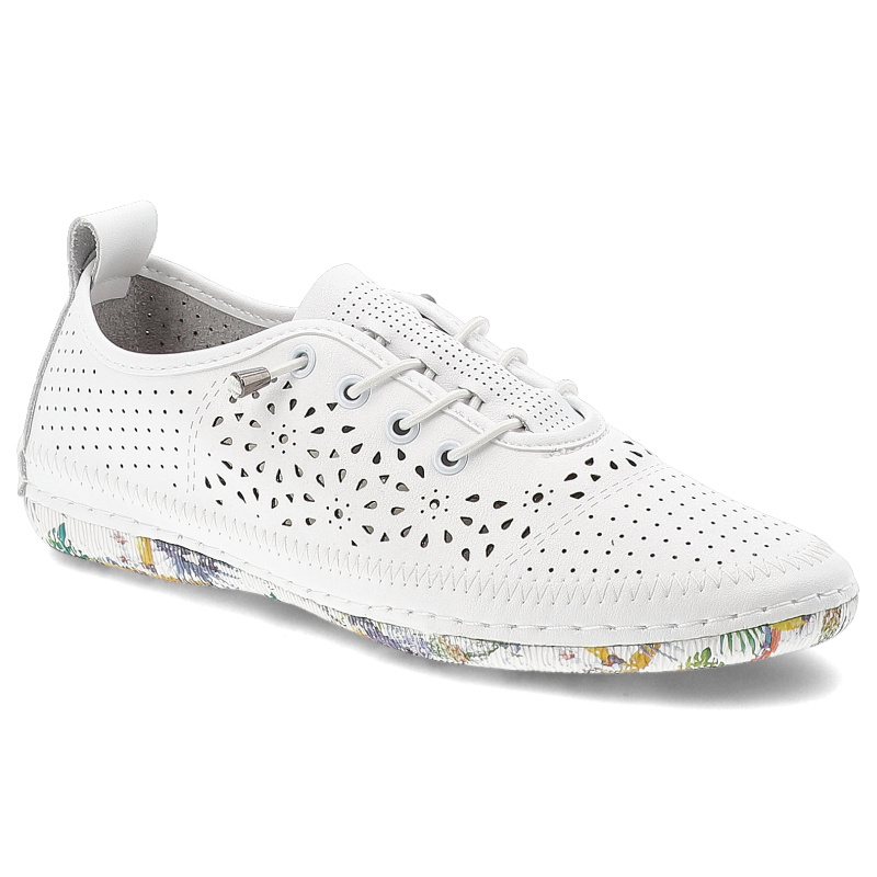 Półbuty damskie Artiker, cholewka ze skóry naturalnej licowej z ażurową perforacją na wiązanie, białe, 58C0378 – biały 20321-H