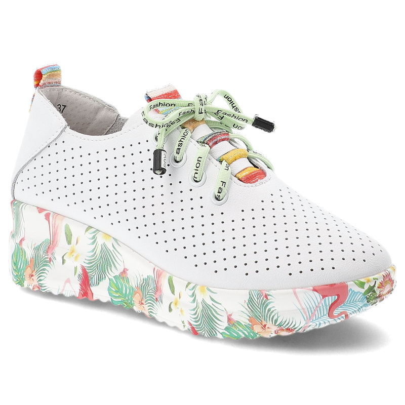 Szukasz idealnych półbutów damskich na co dzień? Model Półbuty damskie Artiker, skóra naturalna perforowana cholewka kolorowe sznurówki ozdobny język platformowa lekka podeszwa, białe, 58C0598 to połączenie stylu, wygody i ponadczasowego designu.