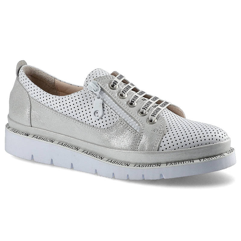 Szukasz idealnych półbutów damskich na co dzień? Model Półbuty damskie Artiker, ze skórzaną perforowaną cholewką elastycznym sznurowaniem bocznym suwakiem i lekką podeszwą z bieżnikiem, biało-srebrne, 46C to połączenie stylu, wygody i ponadczasowego designu.