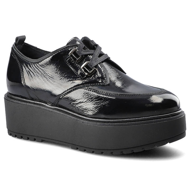 Szukasz idealnych półbutów damskich na co dzień? Model Półbuty damskie Chebello, sznurowany fason lakierowana cholewka masywna platformowa podeszwa stabilna konstrukcja wygodne dopasowanie, czarne, 2558_2 to połączenie stylu, wygody i ponadczasowego designu.