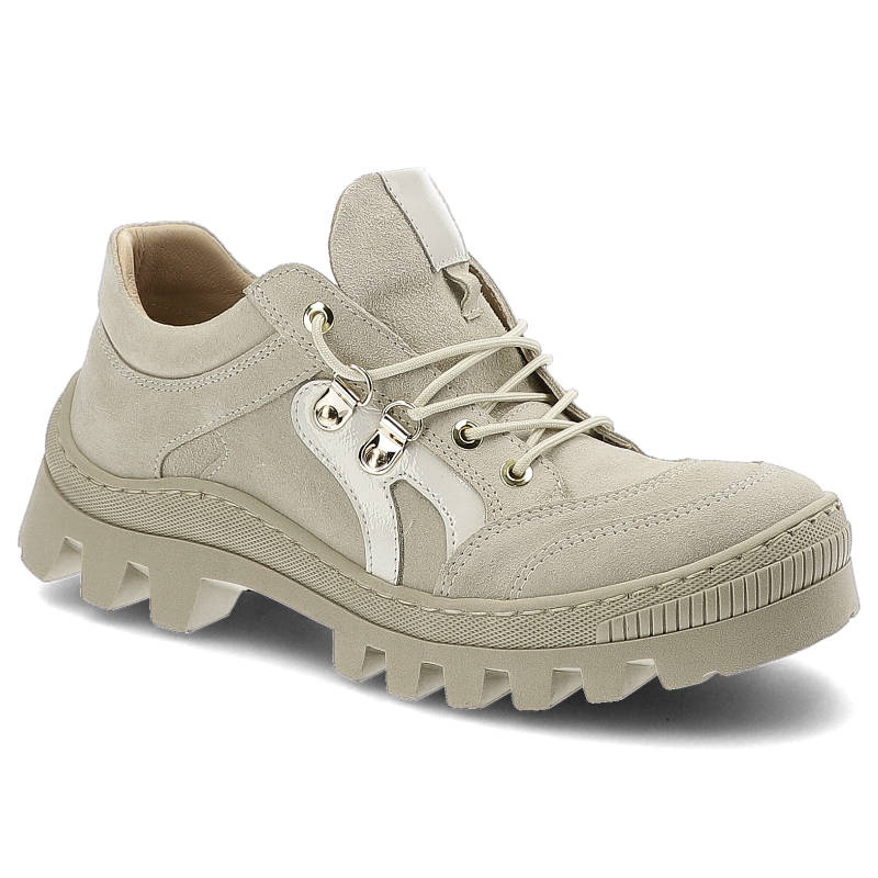 Szukasz idealnych półbutów damskich na co dzień? Model Półbuty damskie Kampa, zamszowa cholewka o miękkiej strukturze sportowe sznurowanie z metalowymi oczkami, beżowe, N544 to połączenie stylu, wygody i ponadczasowego designu.