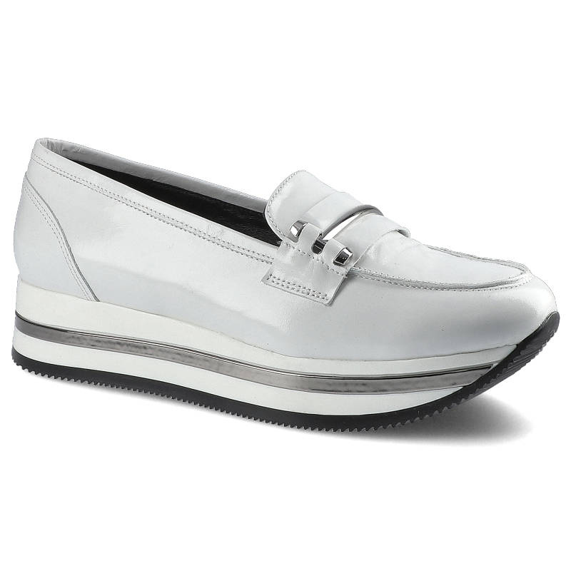 Szukasz idealnych półbutów damskich na co dzień? Model Półbuty damskie Karino, naturalna skóra licowa o lakierowanym wykończeniu w jasnym kolorze z paskiem na podbiciu oraz wielowarstwową podeszwą z kontr to połączenie stylu, wygody i ponadczasowego designu.
