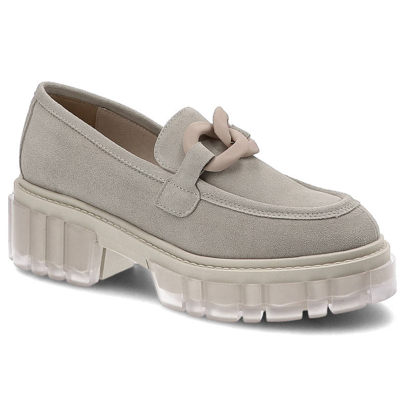 Szukasz idealnych półbutów damskich na co dzień? Model Półbuty damskie Karino, naturalna skóra zamszowa z gładką cholewką i masywną transparentną podeszwą, bez, 4269-001-P to połączenie stylu, wygody i ponadczasowego designu.