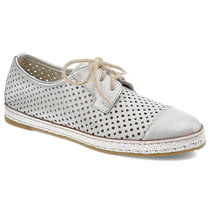 Szukasz idealnych półbutów damskich na co dzień? Model Półbuty damskie Karino, wiązane i ze skóry naturalnej, srebrne, 2023-078-P to połączenie stylu, wygody i ponadczasowego designu.