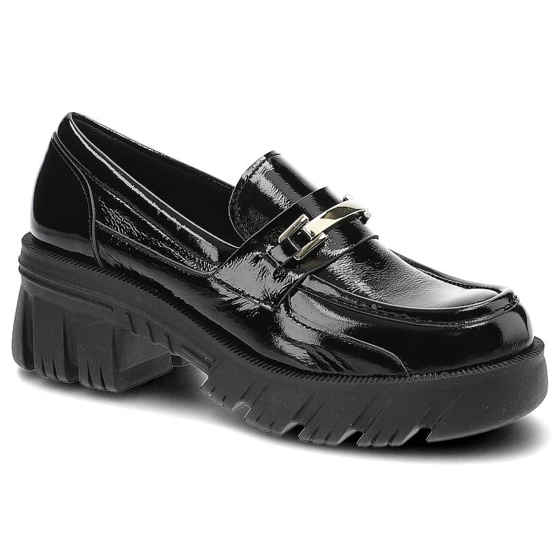 Szukasz idealnych półbutów damskich na co dzień? Model Półbuty damskie Lemar, lakierowana skóra naturalna masywna podeszwa o rzeźbionej strukturze metalowy detal, naplak czarny/zł, 20110 to połączenie stylu, wygody i ponadczasowego designu.
