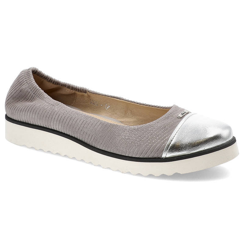 Półbuty damskie Libero, skóra naturalna na płaskiej podeszwie i ze srebrnym noskiem, szaro-srebrne, 5020 – szary 5180-21