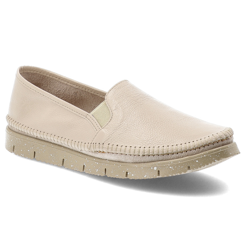 Półbuty damskie Maciejka, cholewka ze skóry naturalnej gładkiej wsuwany fason elastyczne wstawki po bokach widoczne przeszycia wokół noska gruba jedn – beżowy 19799-21