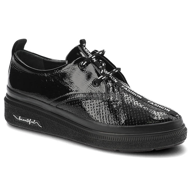 Szukasz idealnych półbutów damskich na co dzień? Model Półbuty damskie Ravini, lakierowana cholewka o wyrazistym połysku klasyczne sznurowanie z dekoracyjną taśmą, czarne, 195-500-2-Czarny-30-T-Prsyh to połączenie stylu, wygody i ponadczasowego designu.