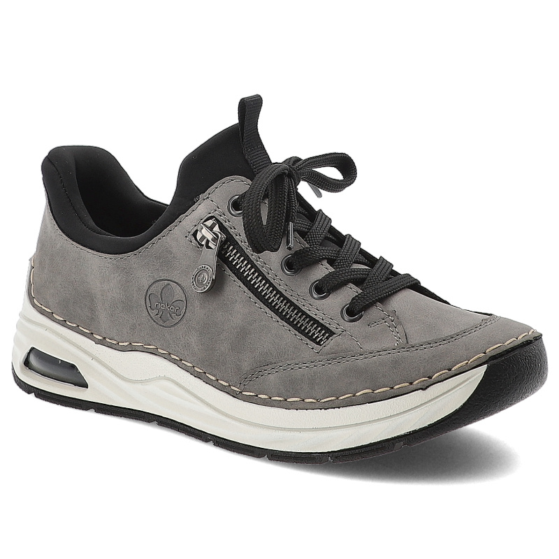 Szukasz idealnych półbutów damskich na co dzień? Model Półbuty damskie Rieker, antistress na grubej podeszwie z miękkimi wkładkami i sznurowane, szare, 44567-42 to połączenie stylu, wygody i ponadczasowego designu.