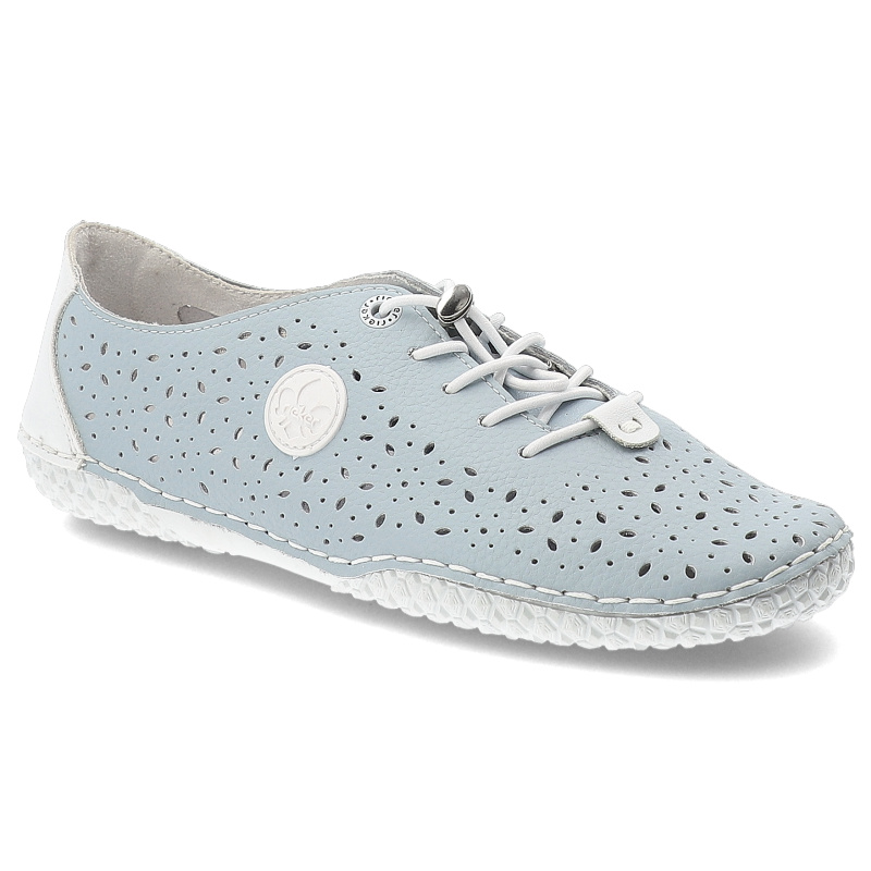 Szukasz idealnych półbutów damskich na co dzień? Model Półbuty damskie Rieker, ażurowa cholewka sznurowane lekka podeszwa wygodny codzienny fason, niebieskie, 43656-12 to połączenie stylu, wygody i ponadczasowego designu.
