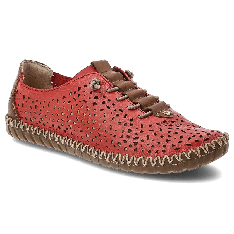Szukasz idealnych półbutów damskich na co dzień? Model Półbuty damskie Rieker, cholewka ze skóry naturalnej licowej z ażurową perforacją fason na płaskiej podeszwie, czerwone, M2856-33 to połączenie stylu, wygody i ponadczasowego designu.