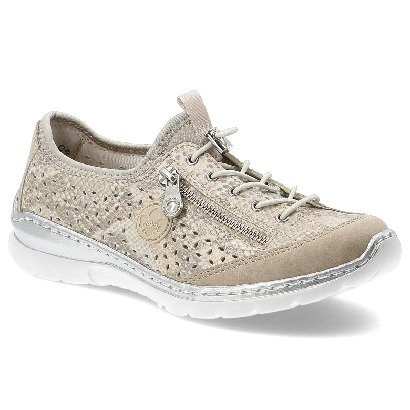 Szukasz idealnych półbutów damskich na co dzień? Model Półbuty damskie Rieker, skóra naturalna ażurowa cholewka elastyczne sznurowanie suwak boczny miękka wkładka lekka i amortyzująca podeszwa, złote, L32 to połączenie stylu, wygody i ponadczasowego designu.