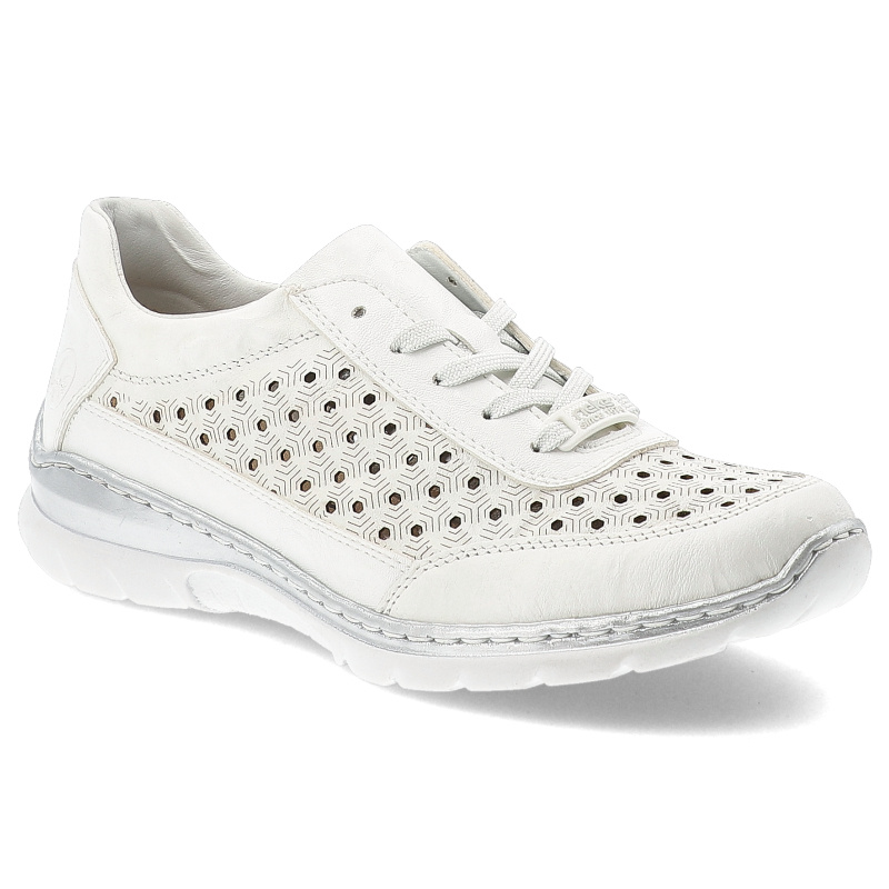 Szukasz idealnych półbutów damskich na co dzień? Model Półbuty damskie Rieker, skóra naturalna perforowana cholewka sznurowany fason lekka elastyczna podeszwa okrągły nosek, białe, L3217-80 to połączenie stylu, wygody i ponadczasowego designu.