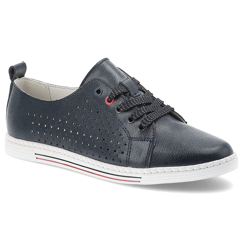 Półbuty damskie S. Barski, skórzane na płaskiej podeszwie ażurowe i sznurowane, granatowe, LR51-587 – granatowy 18390-21