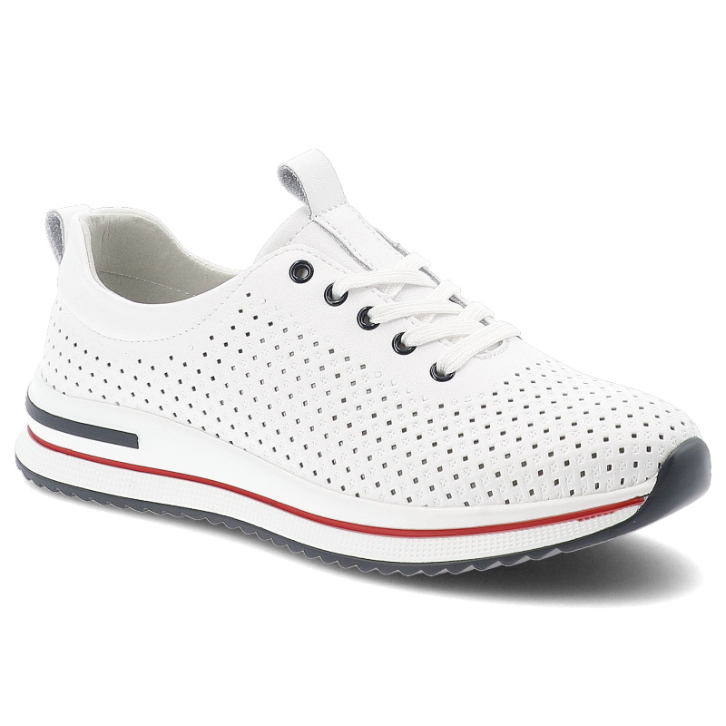 Szukasz idealnych półbutów damskich na co dzień? Model Półbuty damskie S.Barski, sportowe ze skóry naturalnej perforowana cholewka sznurowane lekka amortyzująca podeszwa, białe, LR61-7072 to połączenie stylu, wygody i ponadczasowego designu.