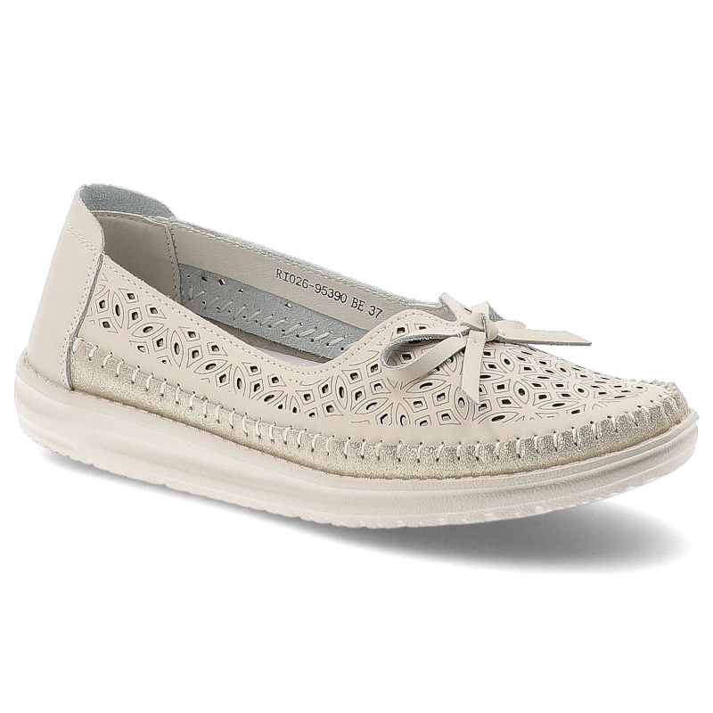 Szukasz idealnych półbutów damskich na co dzień? Model Półbuty damskie Vinceza, cholewka ze skóry naturalnej licowej z ażurową perforacją wsuwany fason z ozdobną kokardą, beżowe, 95390 to połączenie stylu, wygody i ponadczasowego designu.