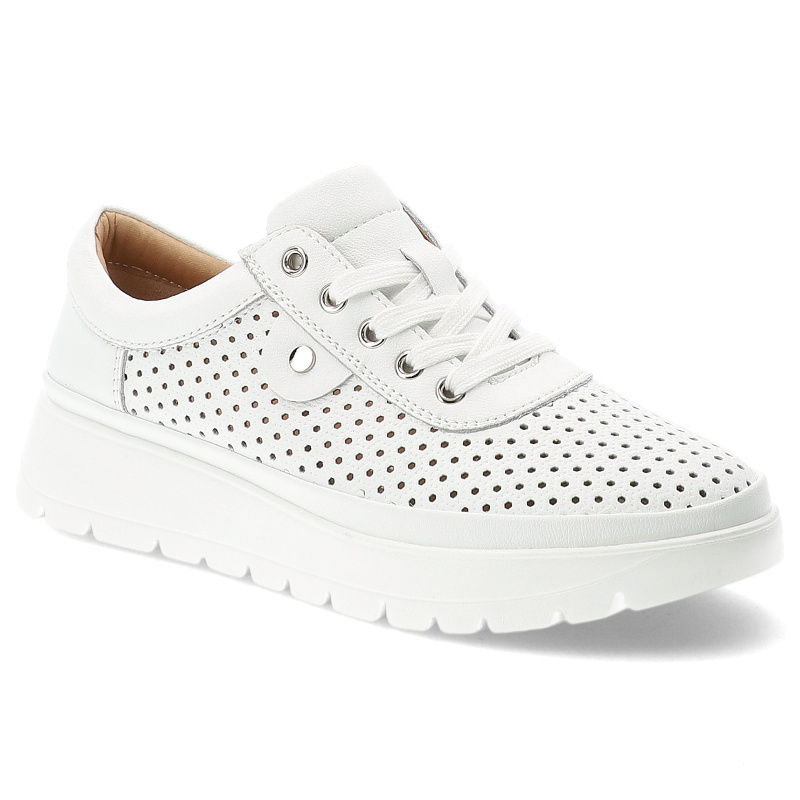 Szukasz idealnych półbutów damskich na co dzień? Model Półbuty damskie Vinceza, cholewka ze skóry naturalnej licowej z perforacją wiązanie z przodu metalowe oczka z zabudowanym przodem, białe, 79629 to połączenie stylu, wygody i ponadczasowego designu.